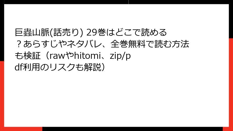 レビューを総括すると、29巻はグロ・心理・アクションの三拍子が揃った「中盤の山場」として、ファンから圧倒的支持。ネガティブは人を選ぶ要素ですが、それが魅力の裏返し。完結済みの今、1巻から読み直すのに最適! もし迷ってるなら、無料試し読みから飛び込んで。次回は30巻のレビュー比較をお届けかも? 皆さんの感想、コメントでシェアしてね。