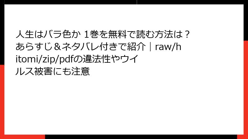 『人生はバラ色か』をraw・hitomi・漫画バンクなどで読むと何がヤバい? 海賊版のリアルなリスクを徹底解説