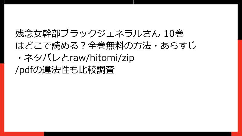 こんにちは、正規派漫画ブロガーの「まんが防衛軍」です。今日は大好きな『残念女幹部ブラックジェネラルさん』を例に、「海賊版サイトで読むとどれだけ危険か」をガチでまとめました。