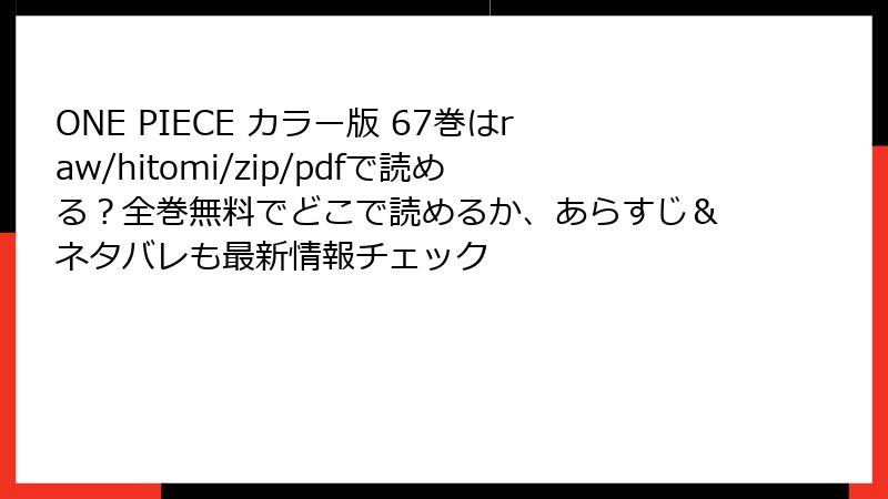 ONE PIECE カラー版 67巻はraw/hitomi/zip/pdfで読める?全巻無料でどこで読めるか、あらすじ&ネタバレも最新情報チェック