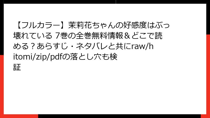 大人気ラブコメ『茉莉花ちゃんの好感度はぶっ壊れている』7巻のネタバレを、徹底的に掘り下げます! 前巻までの積み重ねが爆発するこの巻は、彼方の成長と女子たちの本音が交錯するカオス展開満載。フルカラーのメーター効果が特に映えるシーンが連発で、笑いとドキドキの連続です。未読の方はここでブラウザバックを! ここからは一切の慈悲なしの完全ネタバレでお届け。シリーズの核心に迫る秘密もチラ見えですよ。