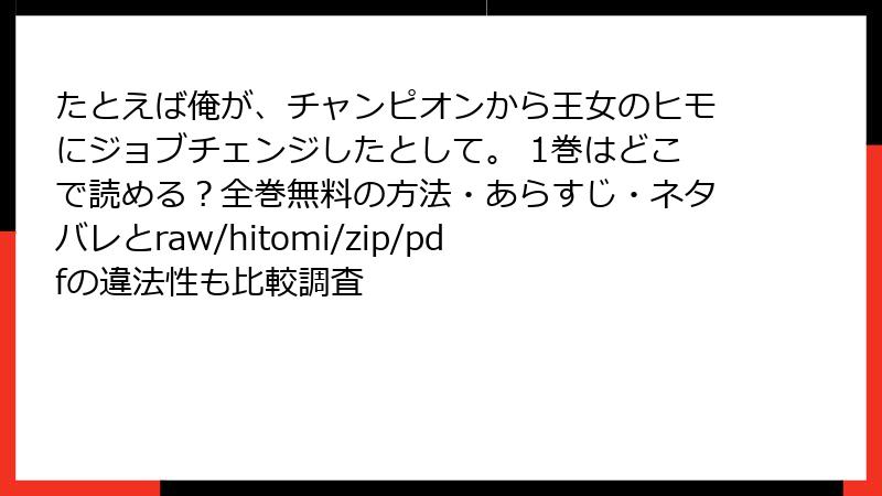 - 『たとえば俺が、チャンピオンから王女のヒモにジョブチェンジしたとして。』を海賊版サイトで読むリスク大公開! raw/hitomi/zip/pdf/漫画バンクなどの危険性