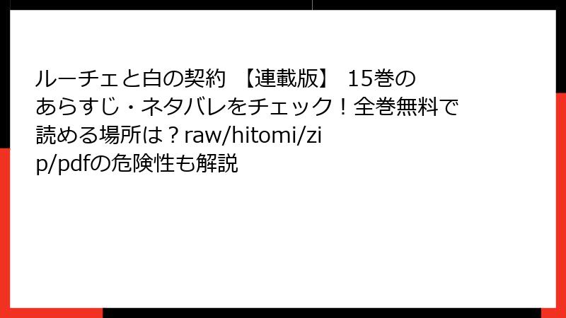 raw、hitomi、zip、pdf、漫画バンクなどの海賊版サイトは、一時的な無料の裏に多大なリスクを隠しています。法的処罰、セキュリティ脅威、プライバシー侵害、品質低下、倫理的問題が絡み合い、結果として損失の方が大きいです。『ルーチェと白の契約』を安全に楽しむなら、正規の電子書籍サービスや書店を利用しましょう。健全な読書が、作品の未来を守ります。