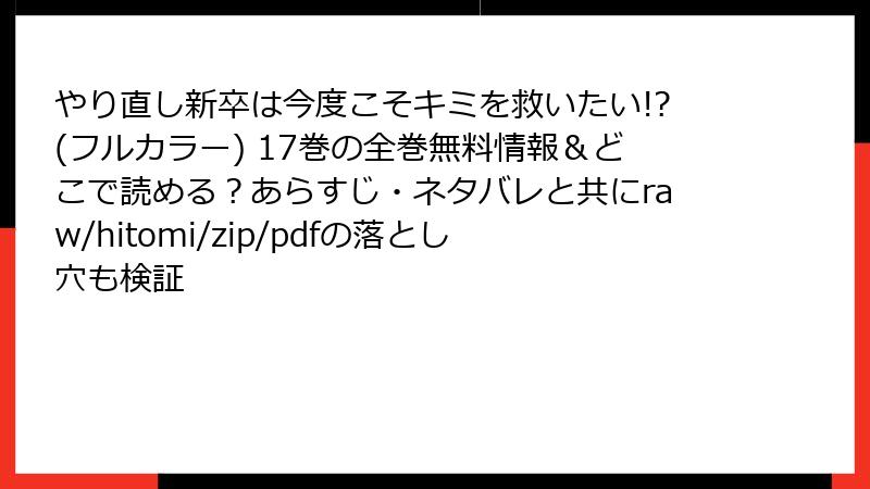 やり直し新卒は今度こそキミを救いたい!? (フルカラー) 17巻 レビュー・口コミ・評判大特集:ファンの熱い声と隠れた魅力