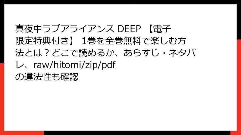 真夜中ラブアライアンス DEEP 1巻:電子書籍版の配信サービス完全ガイド