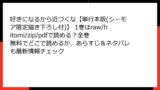 - Renta!: レンタル48時間で試すのもアリ(低価格)。先行配信で早めに読め、描き下ろし特典が強調。会員限定無料エピソードあり。