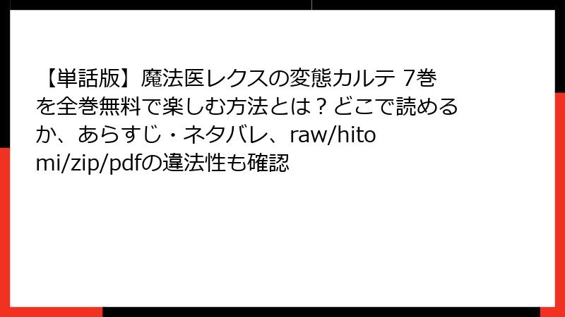 【単話版】魔法医レクスの変態カルテ 7巻を全巻無料で楽しむ方法とは?どこで読めるか、あらすじ・ネタバレ、raw/hitomi/zip/pdfの違法性も確認