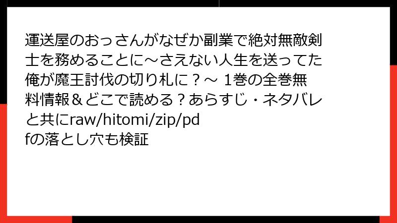 - 運送屋のおっさんがなぜか副業で絶対無敵剣士を務めることに~さえない人生を送ってた俺が魔王討伐の切り札に?~ 1巻 完全ネタバレ解説