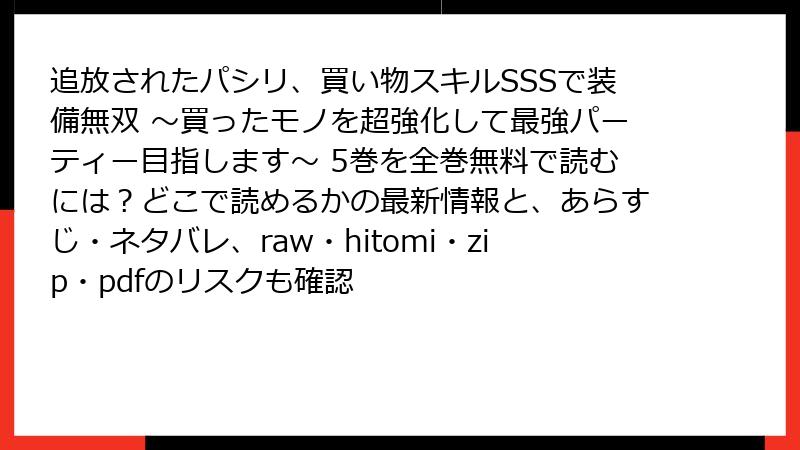 - 追放されたパシリ、買い物スキルSSSで装備無双 ~買ったモノを超強化して最強パーティー目指します~ を海賊版サイトで読むリスク大解剖