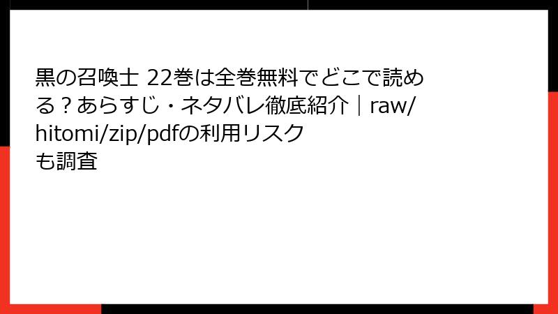 人気異世界ファンタジー漫画『黒の召喚士』を、raw、hitomi、zip、pdf、漫画バンクなどの海賊版サイトで無料で読もうと考える人もいるかもしれません。しかし、これらのサイトを利用することは、さまざまな深刻なリスクを伴います。この記事では、海賊版サイトの利用がもたらす法的、セキュリティ、経済的、品質面、倫理的側面の危険性を詳しく解説します。公式ルートで楽しむことを強くおすすめしますが、まずはこれらのリスクを理解して、後悔しない選択をしましょう。