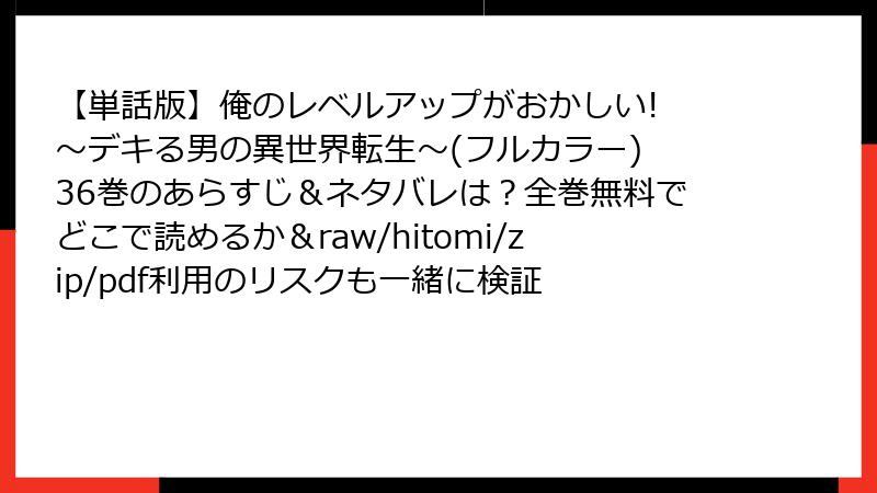 raw、hitomi、zip、pdf、漫画バンクなどの海賊版サイトは、法的・セキュリティ・経済的リスクが満載です。『俺のレベルアップがおかしい! ~デキる男の異世界転生~』のような面白い作品を、心置きなく楽しむなら、公式の電子書籍サービスを利用しましょう。リスクを避け、作者を応援する選択が、長期的に見て最高のファン体験を提供します。海賊版の誘惑に負けず、賢い読者になりましょう。