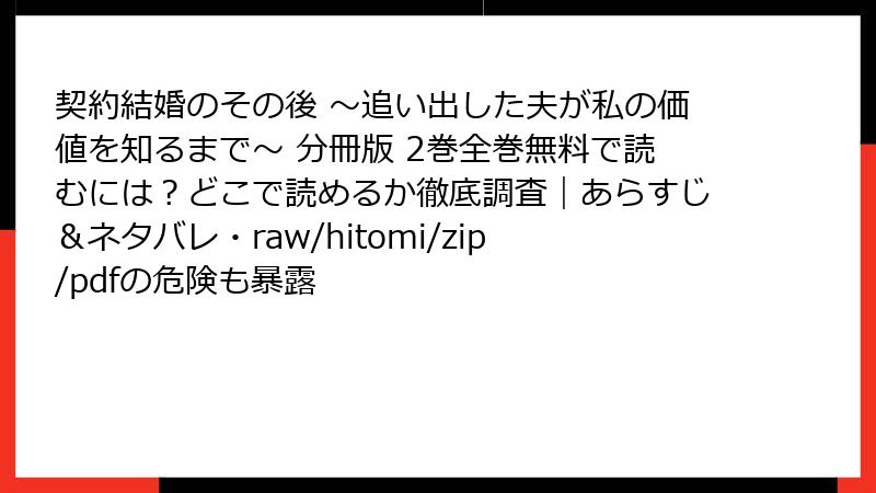 人気の漫画「契約結婚のその後 ~追い出した夫が私の価値を知るまで~ 分冊版 2巻」を、raw、hitomi、zip、pdf、漫画バンクなどの海賊版サイトで読むのは、一見無料で手軽に思えるかもしれません。しかし、これらのサイトは違法アップロードされたコンテンツを提供しており、利用者自身に深刻なリスクを伴います。法的問題からセキュリティの脅威、さらには倫理的な側面まで、さまざまな角度から詳しく解説します。海賊版サイトの利用は、短期的な便利さ以上の代償を払うことになる可能性が高いのです。以下で、各リスクを深掘りしていきましょう。
