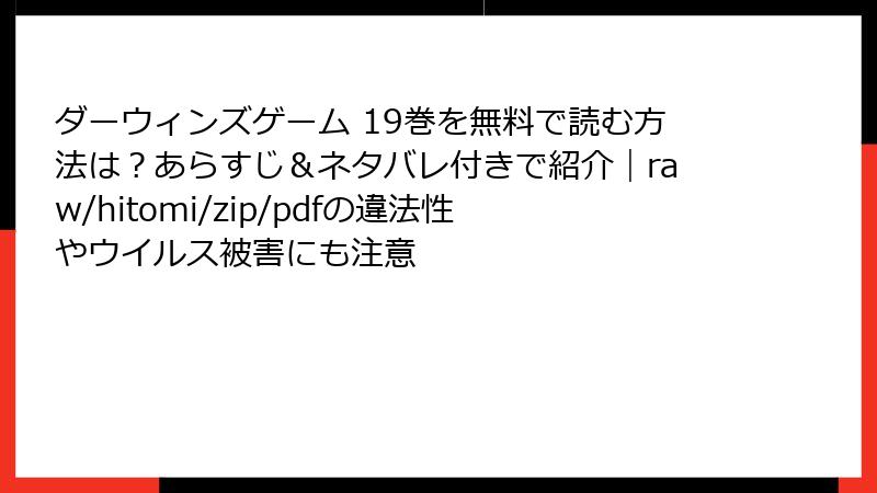 ダーウィンズゲーム 19巻を海賊版サイトで読むリスク:raw/hitomi/zip/pdf/漫画バンクなどの落とし穴
