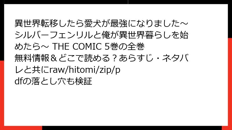 - 異世界転移したら愛犬が最強になりました~シルバーフェンリルと俺が異世界暮らしを始めたら~ THE COMIC を海賊版サイトで読むリスク徹底解説