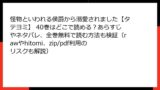 - サイトの特徴: 無断アップロードで最新話が即日公開されるが、品質が悪く、ウイルス混入が多い。