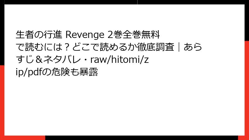 生者の行進 Revenge 2巻全巻無料で読むには?どこで読めるか徹底調査|あらすじ&ネタバレ・raw/hitomi/zip/pdfの危険も暴露
