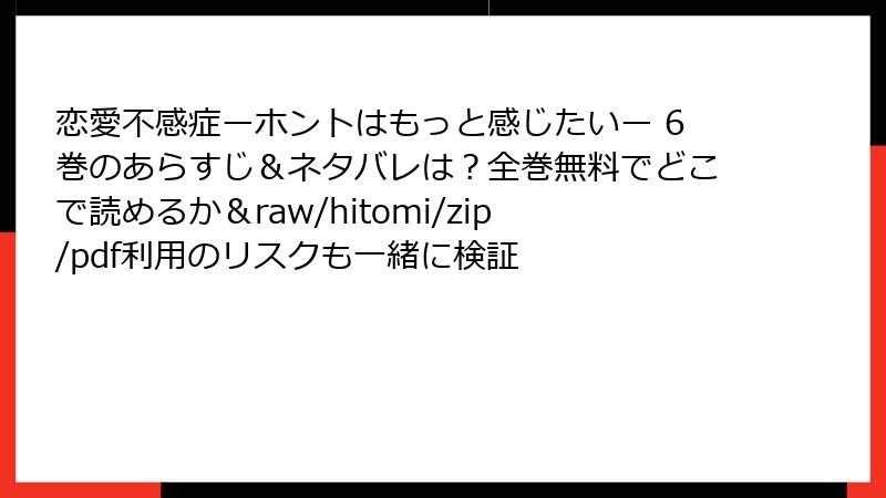 人気のエロティック・ラブコメ『恋愛不感症―ホントはもっと感じたい―』を楽しみたい気持ちはわかりますが、raw、hitomi、zip、pdf、漫画バンクなどの海賊版サイトを利用するのは絶対に避けましょう。これらのサイトは著作権を無視した違法アップロードが横行しており、利用者は知らず知らずのうちに深刻なリスクを抱えることになります。この記事では、法的側面からセキュリティ、詐欺、倫理的問題まで、詳細に解説。実体験例も交えて、なぜ正規ルートを選ぶべきかを読み応えのある形でまとめます。海賊版の「無料」の裏側に潜む罠を知り、安全に作品を楽しむ参考にしてください。