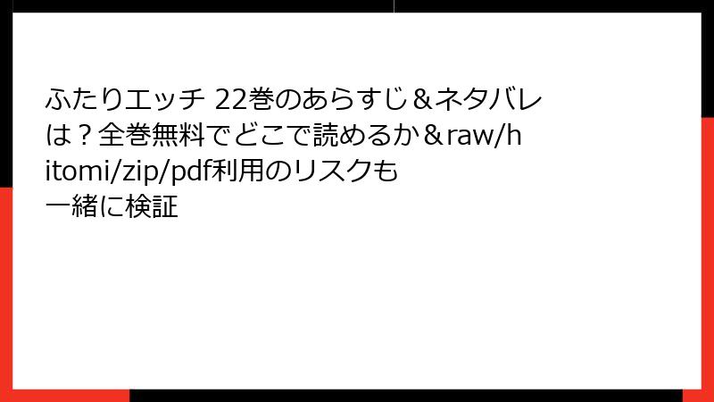 - ふたりエッチ 22巻を海賊版サイトで読むリスク:知っておくべき深刻な危険性