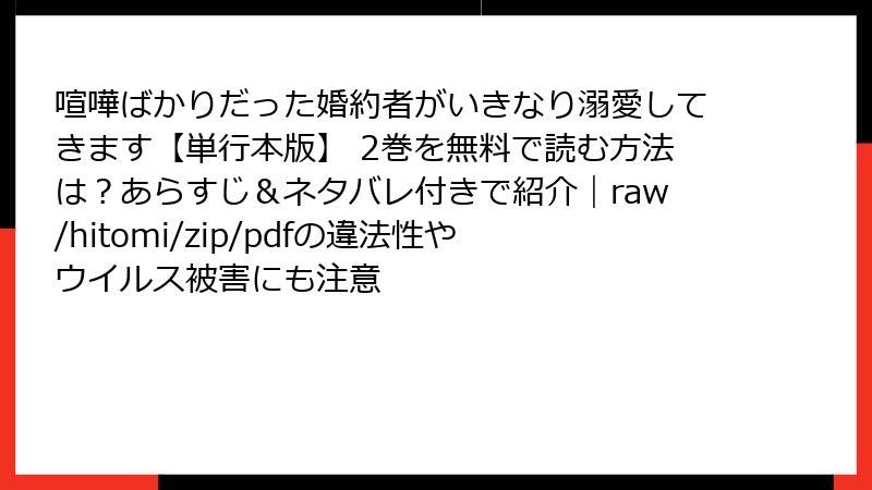 喧嘩ばかりだった婚約者がいきなり溺愛してきます 2巻を海賊版サイトで読むリスク徹底解説