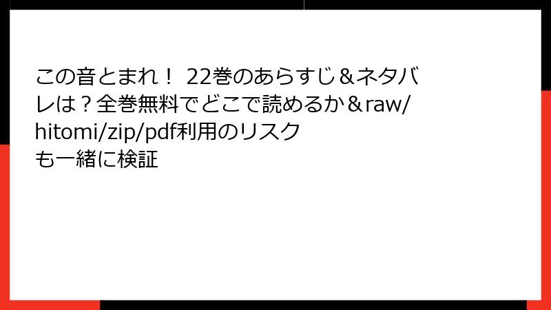 こんにちは! 人気漫画『この音とまれ!』のファンの皆さん。魅力的なストーリーと美しい筝曲の世界に没頭したい気持ちはわかりますが、海賊版サイト(raw、hitomi、zip、pdf、漫画バンクなど)を利用するのは絶対に避けましょう。これらのサイトは一見無料で便利に見えますが、実は深刻なリスクが伴います。この記事では、法律的な問題からセキュリティの脅威、さらには業界全体への影響まで、詳しく解説します。合法的な方法で楽しむことをおすすめしますが、ここではリスクに焦点を当てて読み応えのある内容でお届けします。あなたのデバイスや未来を守るために、ぜひ最後までお読みください。