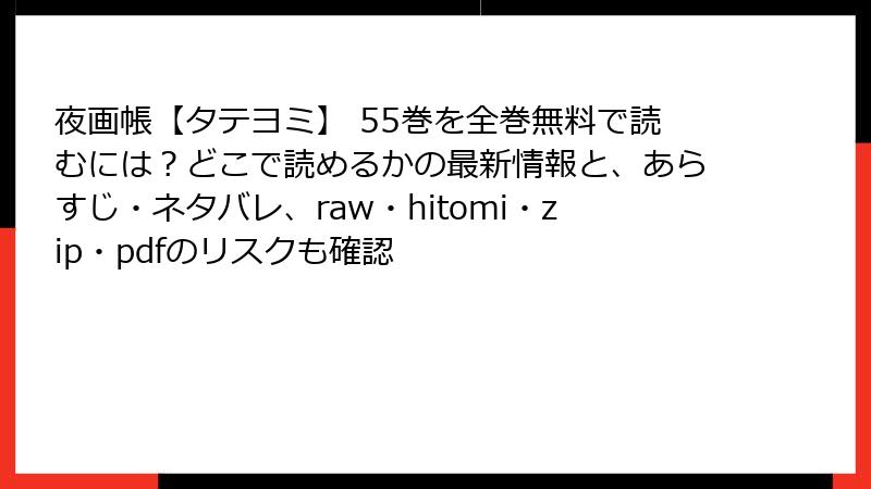 人気のBL漫画『夜画帳【タテヨミ】』を、raw、hitomi、zip、pdf、漫画バンクなどの海賊版サイトで無料で読もうと考える人もいるかもしれません。しかし、これらのサイトを利用することは、さまざまな深刻なリスクを伴います。この記事では、法的・セキュリティ・プライバシー・経済的・倫理的な観点から、その危険性を詳しく解説します。海賊版サイトは一見便利に見えますが、結果として自分自身や周囲に大きな損害を与える可能性が高いのです。以下で一つずつ掘り下げていきましょう。