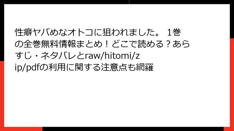 人気BL漫画『性癖ヤバめなオトコに狙われました。』を、raw、hitomi、zip、pdf、漫画バンクなどの海賊版サイトで無料で読もうとする人がいるかもしれません。でも、そんな行為は一見お得に見えても、実は大きな落とし穴がいっぱい。法的トラブルからセキュリティの脅威まで、知らずに利用すると後悔必至です。この記事では、海賊版サイト利用のリスクを詳しく掘り下げ、なぜ避けるべきかをブログ形式でお届け。読み進めて、正しい楽しみ方を考え直してみてください!