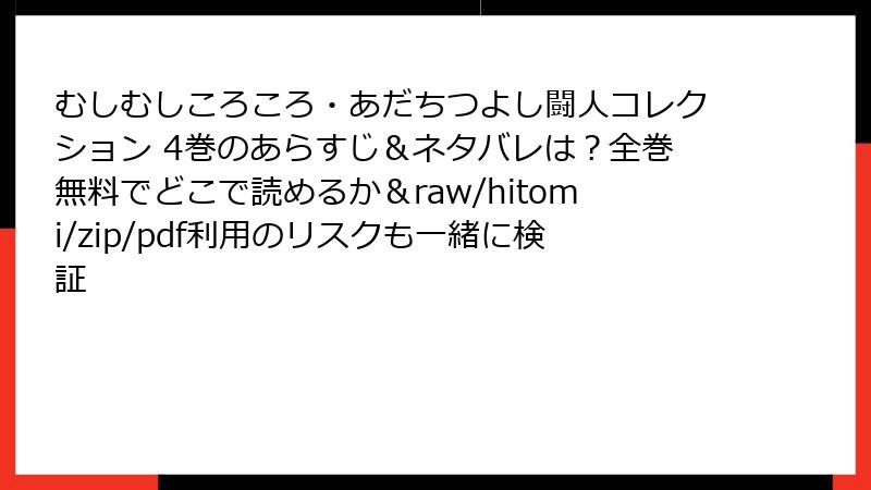 むしむしころころ・あだちつよし闘人コレクション 4巻のあらすじ&ネタバレは?全巻無料でどこで読めるか&raw/hitomi/zip/pdf利用のリスクも一緒に検証