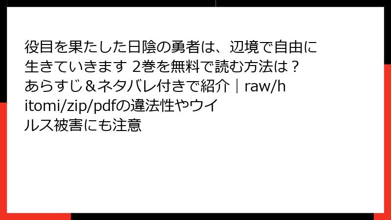 役目を果たした日陰の勇者は、辺境で自由に生きていきます を raw/hitomi/zip/pdf/漫画バンクなどの海賊版サイトで読むリスク