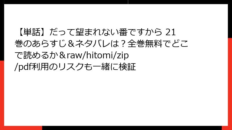 こんにちは、マンガファンで著作権意識の高いブロガーです! 今日は、人気ファンタジーロマンス漫画『だって望まれない番ですから』を、raw、hitomi、zip、pdf、漫画バンクなどの海賊版サイトで読むことのリスクについて、詳しく掘り下げてお届けします。この作品は魅力的なストーリーですが、正規ルートで楽しむのがベスト。海賊版サイトは一見無料で便利に見えますが、隠れた危険がいっぱい。法的・セキュリティ面から倫理的問題まで、読み応えのあるセクションごとに解説します。参考にしつつ、合法的な楽しみ方を考えてみてください。