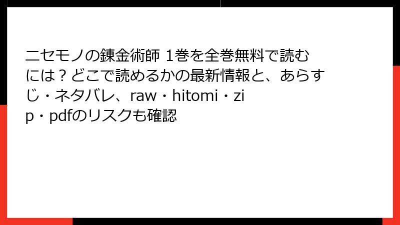 ニセモノの錬金術師 1巻を全巻無料で読むには?どこで読めるかの最新情報と、あらすじ・ネタバレ、raw・hitomi・zip・pdfのリスクも確認
