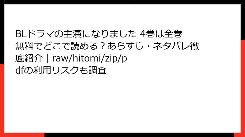 BLドラマの主演になりました 4巻は全巻無料でどこで読める?あらすじ・ネタバレ徹底紹介|raw/hitomi/zip/pdfの利用リスクも調査