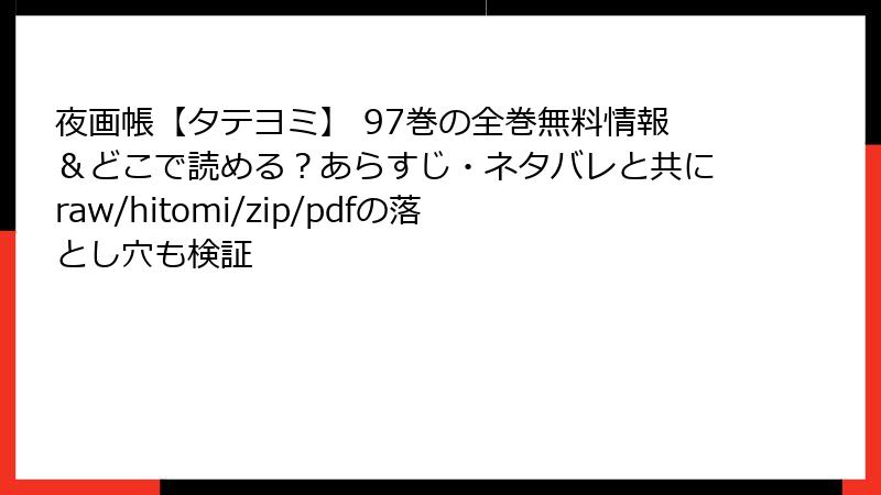 全体として、97巻は心理戦とアクションのバランスが神。『夜画帳』の魅力である「業」と「救済」が凝縮され、読み応え抜群。あなたはこの巻で一番泣きましたか? コメントでシェアしてね!
