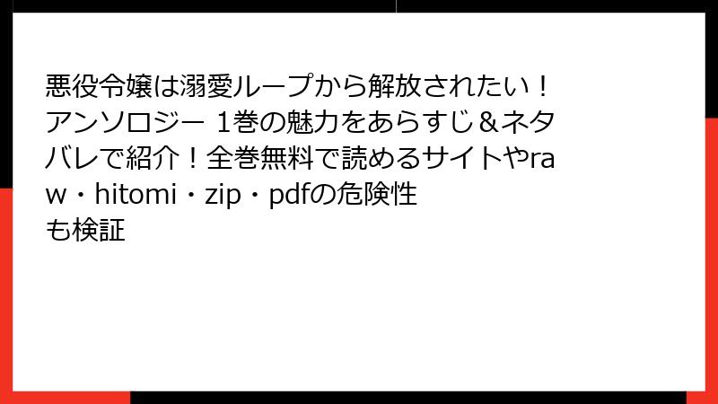 悪役令嬢ファン必見のアンソロジー「悪役令嬢は溺愛ループから解放されたい! 1巻」が話題ですが、raw、hitomi、zip、pdf、漫画バンクなどの海賊版サイトで無料で読もうとする人もいるかも。でも、そんな誘惑に負けちゃダメ! 今回は、海賊版サイトを利用するリスクをガッツリ深掘り。法的問題からセキュリティの脅威まで、リアルな危険性をブログ形式でお届けします。短編の溺愛劇を楽しむなら、正規ルートで安全に。早速、リスクの全貌を暴いていきましょう。
