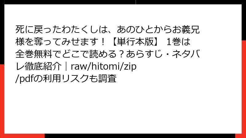 死に戻ったわたくしは、あのひとからお義兄様を奪ってみせます!【単行本版】 1巻は全巻無料でどこで読める?あらすじ・ネタバレ徹底紹介|raw/hitomi/zip/pdfの利用リスクも調査