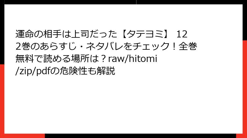 運命の相手は上司だった【タテヨミ】 122巻のあらすじ・ネタバレをチェック!全巻無料で読める場所は?raw/hitomi/zip/pdfの危険性も解説