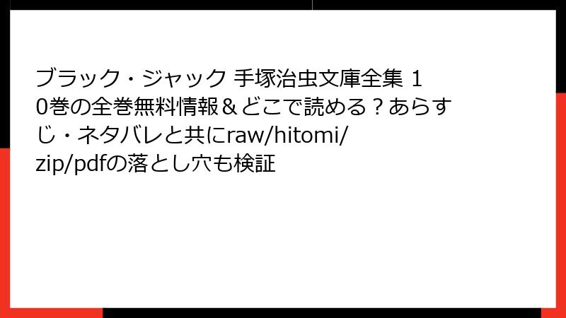 『ブラック・ジャック 手塚治虫文庫全集 10巻』を海賊版サイトで読むのは、法的・セキュリティ・品質・倫理的なリスクが大きすぎます。これらのリスクを避けるため、正規の書店や電子書籍サービスを利用しましょう。漫画を愛するなら、作者を支援する形で楽しむのがベストです。リスクを理解し、賢い選択をしてください。