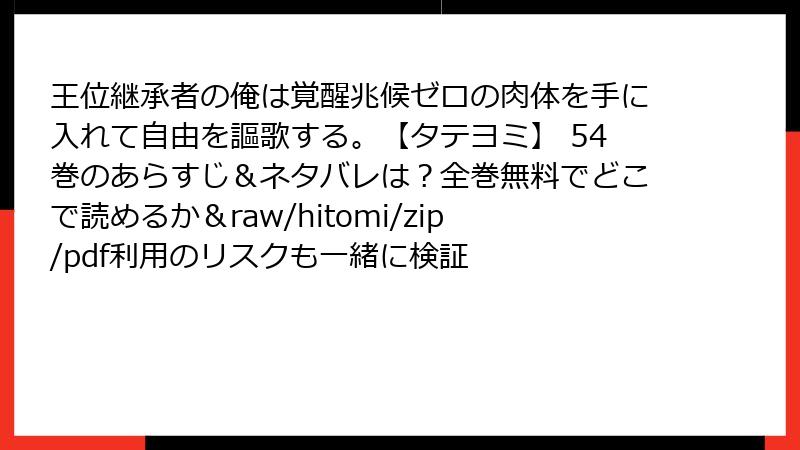 王位継承者の俺は覚醒兆候ゼロの肉体を手に入れて自由を謳歌する。【タテヨミ】 54巻のあらすじ&ネタバレは?全巻無料でどこで読めるか&raw/hitomi/zip/pdf利用のリスクも一緒に検証