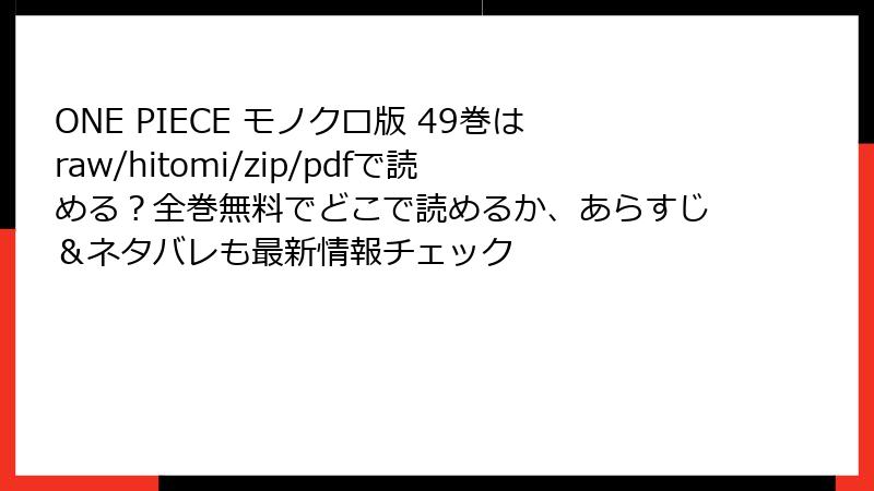 ONE PIECE モノクロ版 49巻はraw/hitomi/zip/pdfで読める?全巻無料でどこで読めるか、あらすじ&ネタバレも最新情報チェック