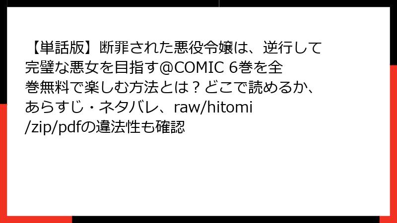 こんにちは、漫画ファン向けのリスク解説ブログへようこそ! 人気の悪役令嬢リベンジストーリー、『断罪された悪役令嬢は、逆行して完璧な悪女を目指す@COMIC』を無料で楽しみたい気持ちはわかりますが、海賊版サイト(raw、hitomi、zip、pdf、漫画バンクなど)を利用するのはおすすめできません。これらのサイトは一見便利ですが、潜むリスクが多大です。今回は、法的問題からセキュリティの脅威、倫理的な側面まで、詳しく掘り下げてお伝えします。無料の誘惑に負けず、正規ルートを選ぶ参考にしてくださいね。読み応え満点に、具体例を交えながら解説していきます!