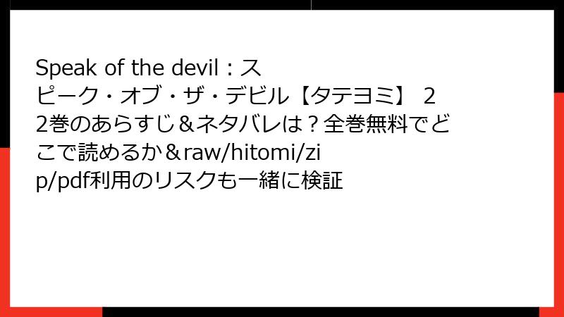 こんにちは、漫画ファン向けのブログ管理人です。今日は、韓国発の人気BLウェブトゥーンスピーク・オブ・ザ・デビル(原題:Speak of the Devil)を、raw/hitomi/zip/pdf/漫画バンクなどの海賊版サイトで読むことのリスクについて、詳しく解説します。この作品は魅力的なストーリーとアートで多くのファンを抱えていますが、海賊版サイトを利用するのはおすすめできません。なぜなら、法的トラブルからデバイスへのダメージ、さらには個人情報の漏洩まで、多大な危険が潜んでいるからです。以下で、複数の側面から読み応えのある形で深掘りします。合法的なプラットフォームで楽しむことを強く推奨します!