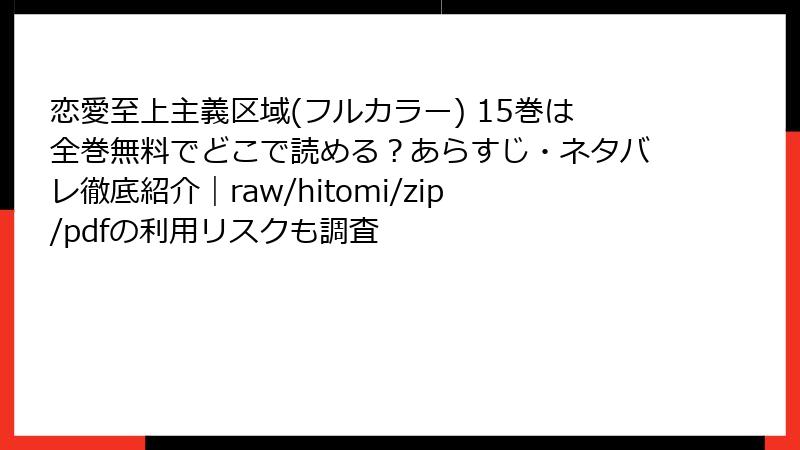 恋愛至上主義区域(フルカラー) 15巻は全巻無料でどこで読める?あらすじ・ネタバレ徹底紹介|raw/hitomi/zip/pdfの利用リスクも調査