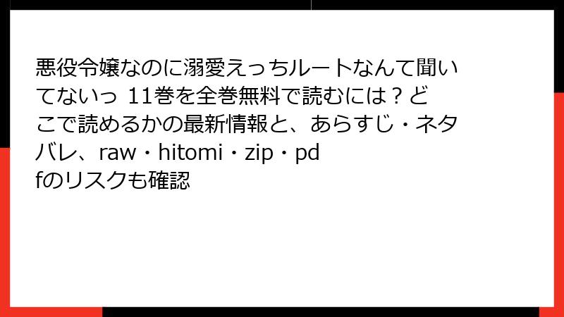 こんにちは、漫画愛好家の皆さん! 人気のファンタジーロマンス作品悪役令嬢なのに溺愛えっちルートなんて聞いてないっの11巻、気になりますよね。でも、raw、hitomi、zip、pdf、漫画バンクなどの海賊版サイトで無料で読もうと考えているなら、ストップ! 今回は、そんな違法サイトを利用するリスクを詳しく掘り下げます。無料の裏側に潜む危険をブログ風に解説。読み応え重視で、法的・セキュリティ面から倫理的側面までカバーします。絶対に軽視しないでくださいね。