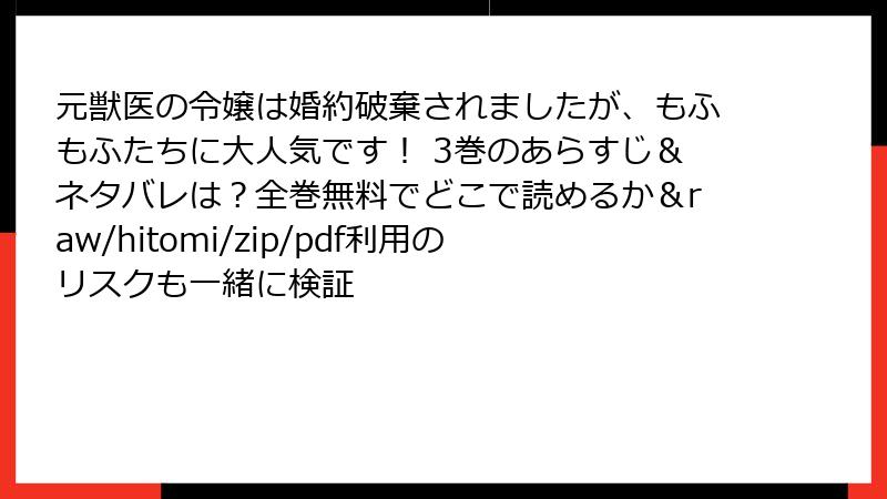 3. 元獣医の令嬢は婚約破棄されましたが、もふもふたちに大人気です! をraw/hitomi/zip/pdf/漫画バンクなどの海賊版サイトで読むリスク