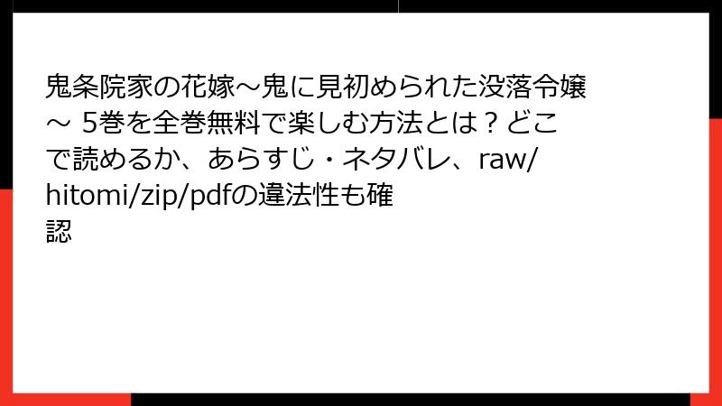 鬼条院家の花嫁~鬼に見初められた没落令嬢~ 5巻を全巻無料で楽しむ方法とは?どこで読めるか、あらすじ・ネタバレ、raw/hitomi/zip/pdfの違法性も確認