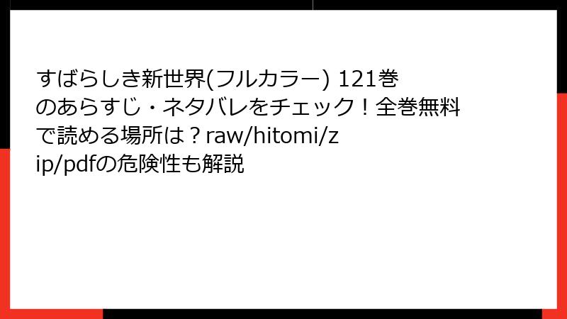 すばらしき新世界(フルカラー) 121巻のあらすじ・ネタバレをチェック!全巻無料で読める場所は?raw/hitomi/zip/pdfの危険性も解説