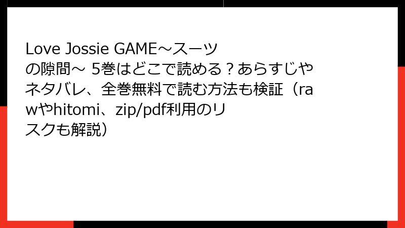 Love Jossie GAME~スーツの隙間~ 5巻はどこで読める?あらすじやネタバレ、全巻無料で読む方法も検証(rawやhitomi、zip/pdf利用のリスクも解説)
