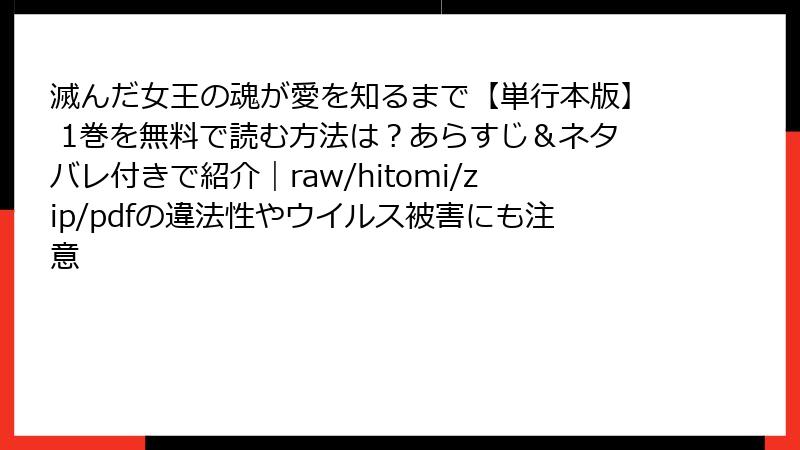 こんにちは、漫画ファン向けの情報ブログを運営するブロガーです。今日は、人気ファンタジー漫画『滅んだ女王の魂が愛を知るまで』を、raw、hitomi、zip、pdf、漫画バンクなどの海賊版サイトで読むことのリスクについて詳しく掘り下げます。この作品は魅力的なストーリーで多くのファンを魅了していますが、海賊版を利用するのはおすすめできません。なぜなら、さまざまな深刻なリスクが伴うからです。ここでは、法的側面からセキュリティ、プライバシー、倫理的問題まで、読み応えのある形でまとめました。合法的な方法で楽しむことを強く推奨します!