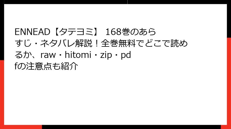 168巻を含む『ENNEAD【タテヨミ】』は、指定8サービス全てで配信されており、クーポンや無料試し読みを活用すれば低コストで楽しめます。BLのダークファンタジーを正規ルートで読み、作者MOJITOを応援しましょう。2025年12月現在、年末セールでさらにお得チャンス! あなたの好みに合ったサービスを選んで、神々の渦に飛び込んでください。