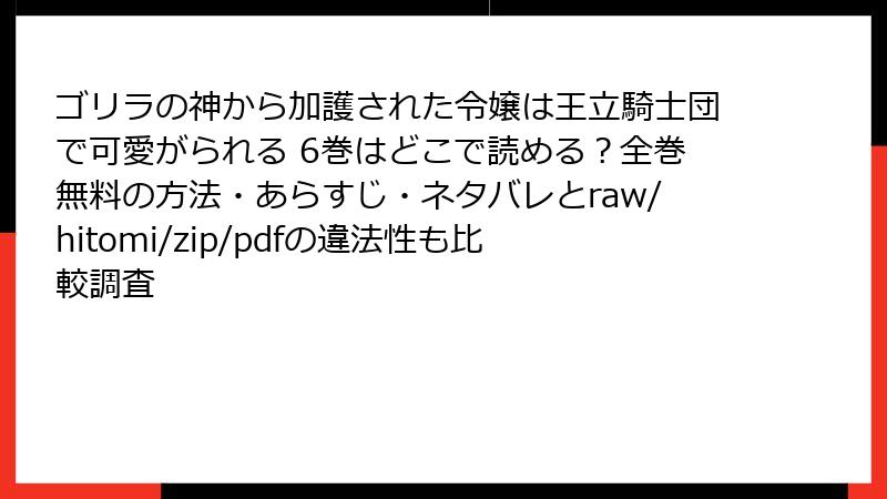 『ゴリラの神から加護された令嬢は王立騎士団で可愛がられる』をraw/hitomi/zip/pdf/漫画バンクなどの海賊版サイトで読むリスク