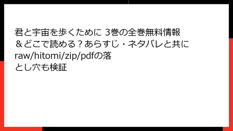 君と宇宙を歩くために 3巻の全巻無料情報&どこで読める?あらすじ・ネタバレと共にraw/hitomi/zip/pdfの落とし穴も検証